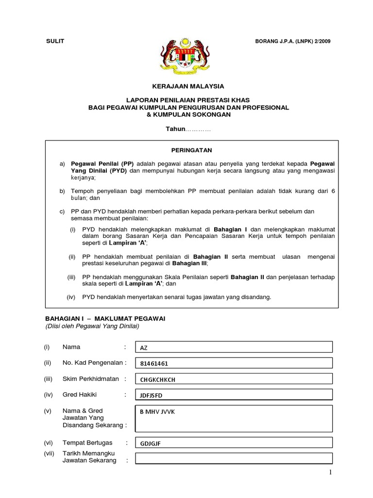 Borang Laporan Penilaian Prestasi Khas Pdf